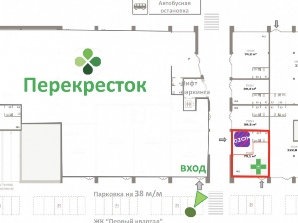 Арендаторы: аптека Горздрав и ПВЗ Озон.
