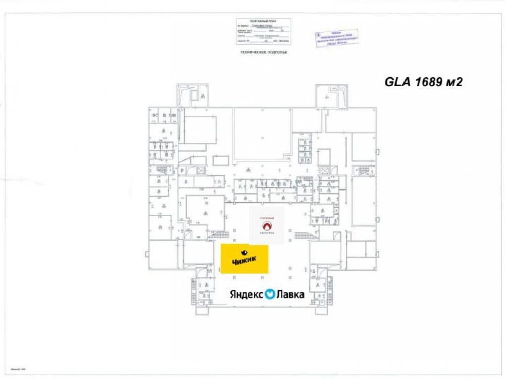 Эксплуатируемые площади: Подвал: 1 689 кв. м.; 1-й этаж: 2 849 кв. м.; 2-й этаж: 2 337 кв. м. 3-й этаж: 1 842 кв. м.; 4-й этаж: 1 022 кв. м.