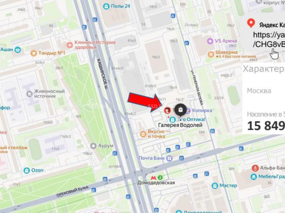 Адрес: г. Москва, ЮАО, район Орехово-Борисово Северное, Ореховый бульвар, 15. Транспортная доступность: 2 минуты пешком до станции метро «Домодедовская». Близость к МКАД (5-7 минут на автомобиле). Высокий пешеходный трафик – более 15 000 человек в сутки. Объект расположен в самом сердце густонаселенного и динамично развивающегося района. Развитая инфраструктура подчеркивается близостью к крупной транспортной развязке с множеством остановок общественного транспорта.