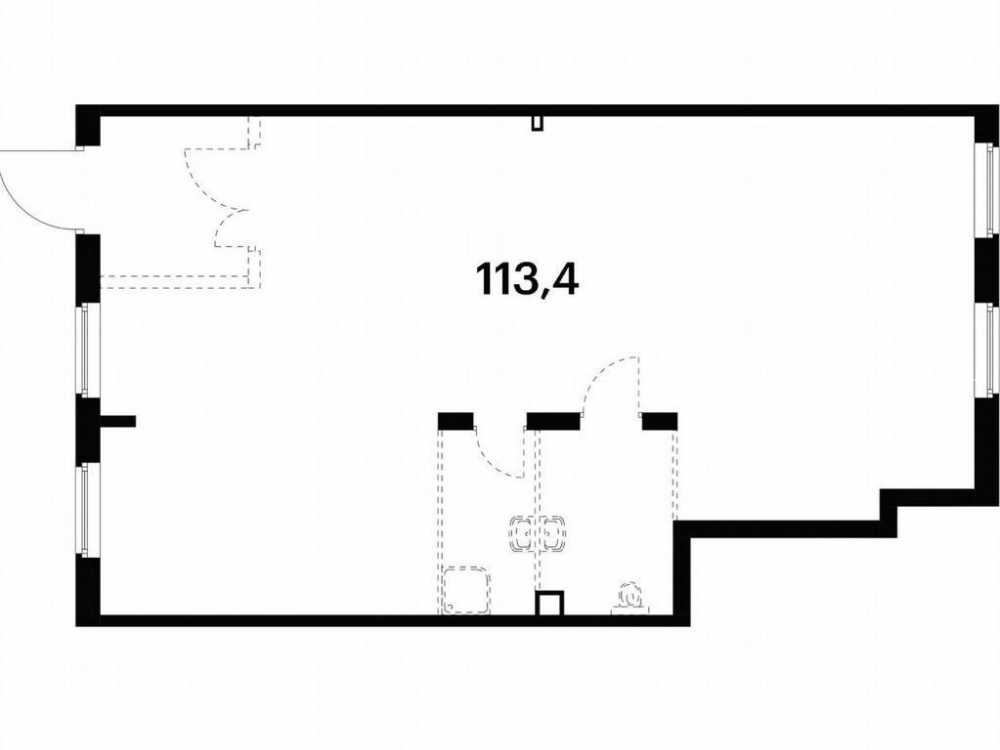 Помещение общей площадью – 113,4 м2. Отдельный вход. Витринное остекление. Корпус сдан, идёт заселение. Выделенная мощность электроэнергии 22 кВт. Высота потолков 4.3 кв.м.