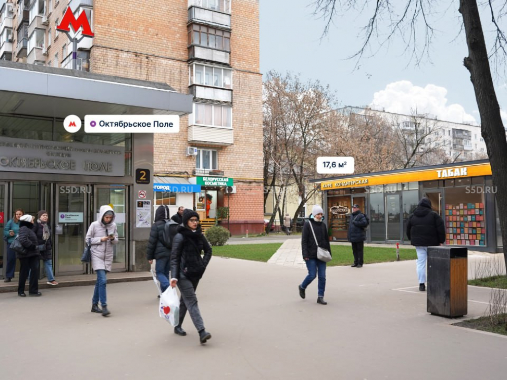 Продажа помещения свободного назначения с готовым арендным бизнесом, расположенного по адресу: Маршала Бирюзова ул., д. 17 корп. 2. Помещение находится в непосредственной близости от станции метро Октябрьское поле, на первой линии. Имеет высокий рекламный потенциал и места для размещения вывесок. Сформированное торговое окружение. Отличная видимость и транспортная доступность. Арендатор: Сетевая кофейня ProSweet