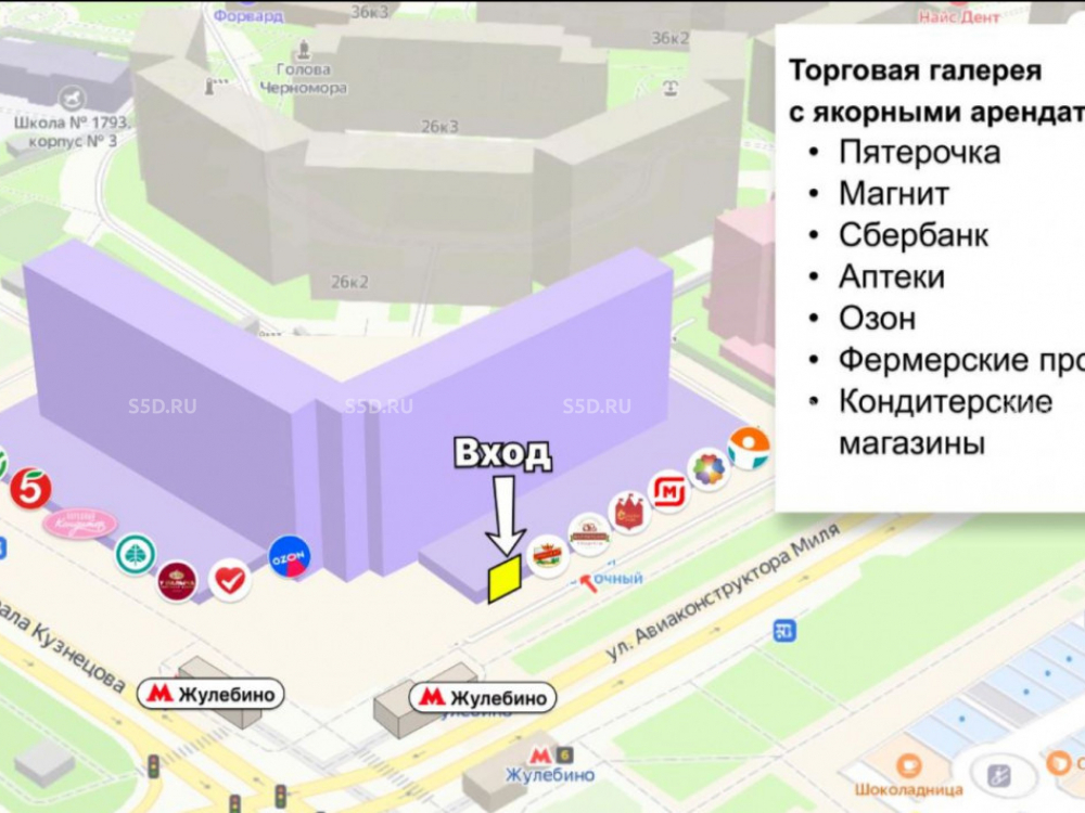 Комплекс находится всего в 1 км от МКАД по Новорязанскому шоссе. Пассажиропоток станции метро Жулебино 50 000 человек в день.