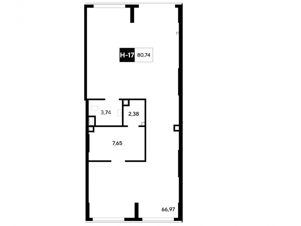 Площадь 80.7 м², располагается на 1 этаже, отдельный вход , высота потолков - 4.2 м., без отделки, мощность электричества 8.07 кВт.