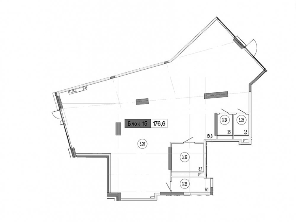 Площадь 176.6 м²., располагается на 1 этаже, отдельный вход , высота потолков - 4.6 м., без отделки, мощность электричества 52.98 кВт.