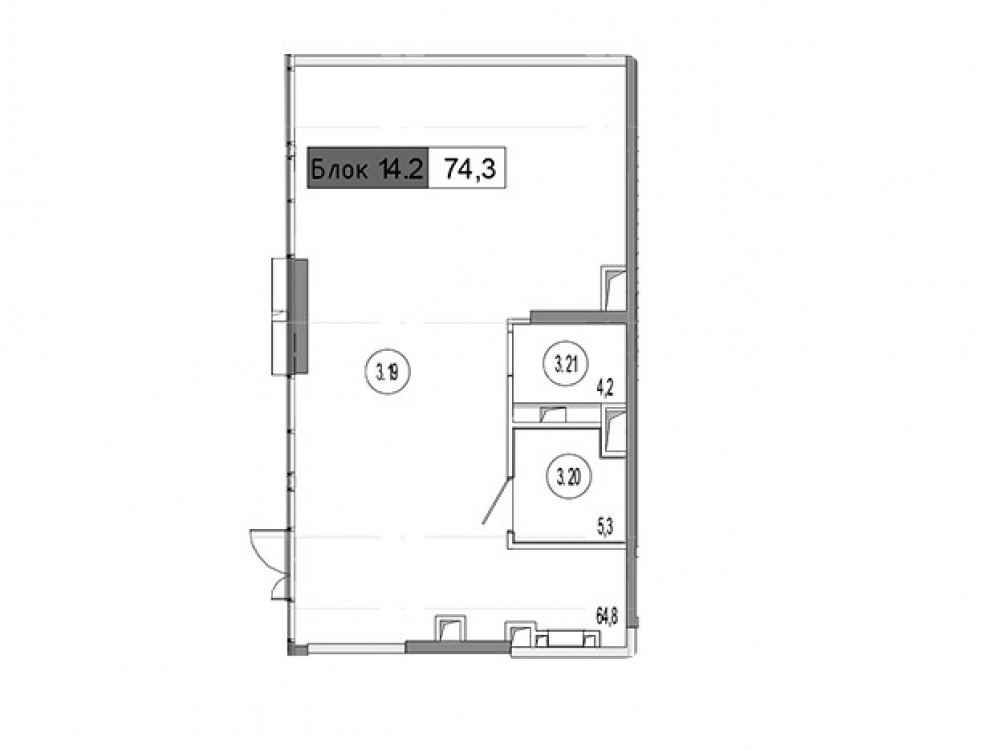 Общая площадь: 74 м2