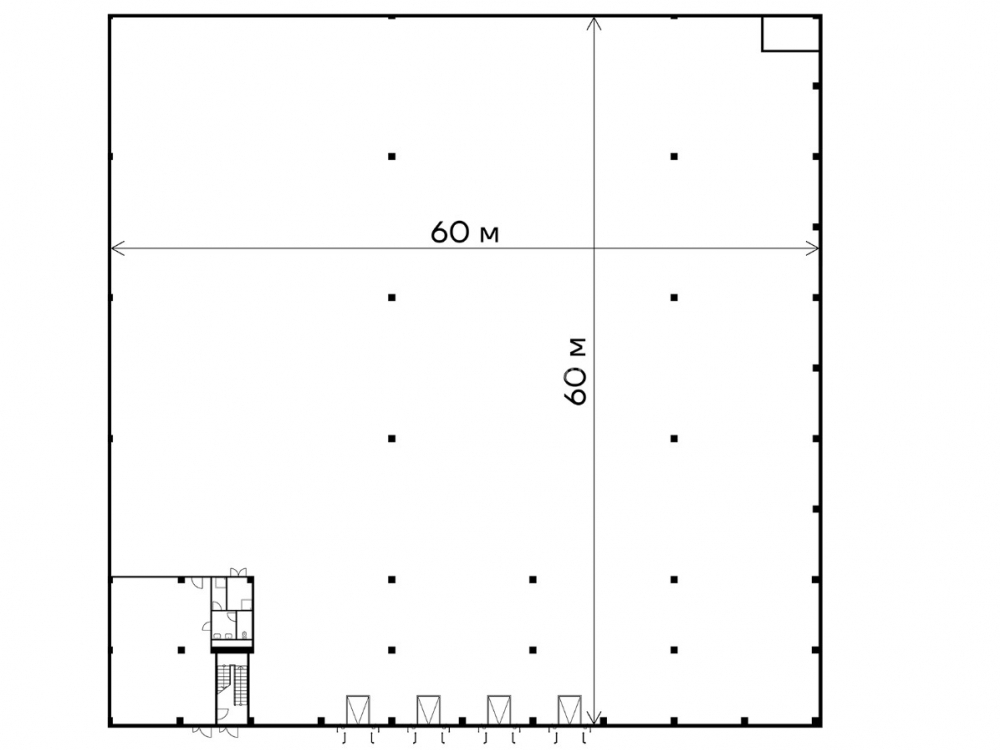 Площадь 4459 м²., располагается на 1 этаже, высота потолков 12,5 м., отделка чистовая.