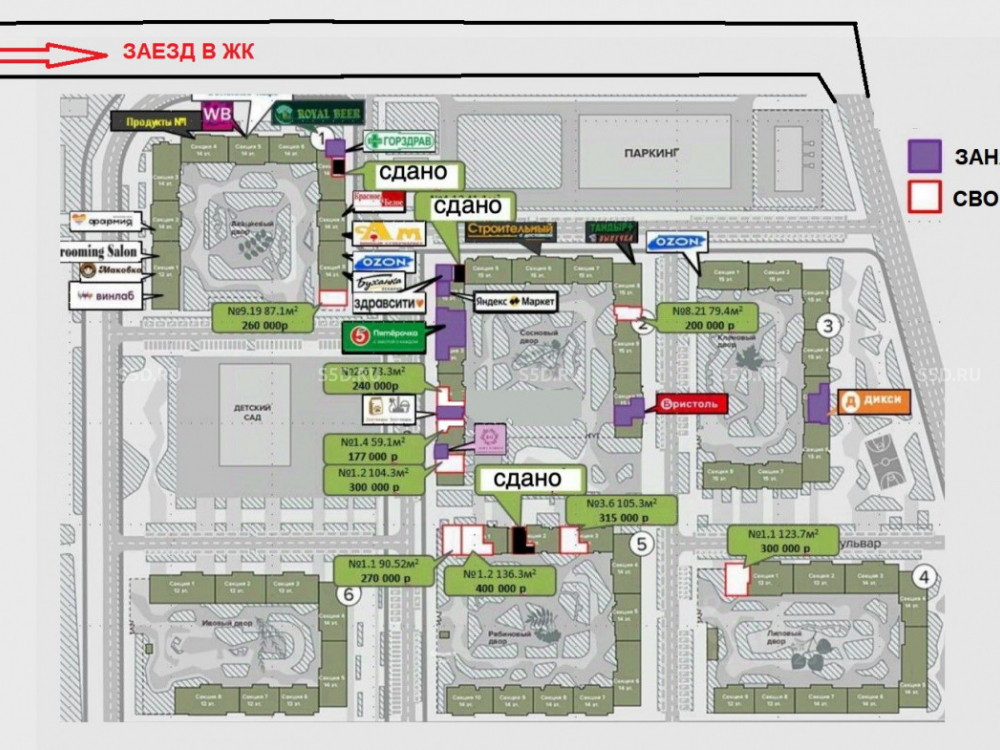 Помещение расположено в начале жилого массива, на въезде в ЖК, на внутреннем пешеходном трафике.