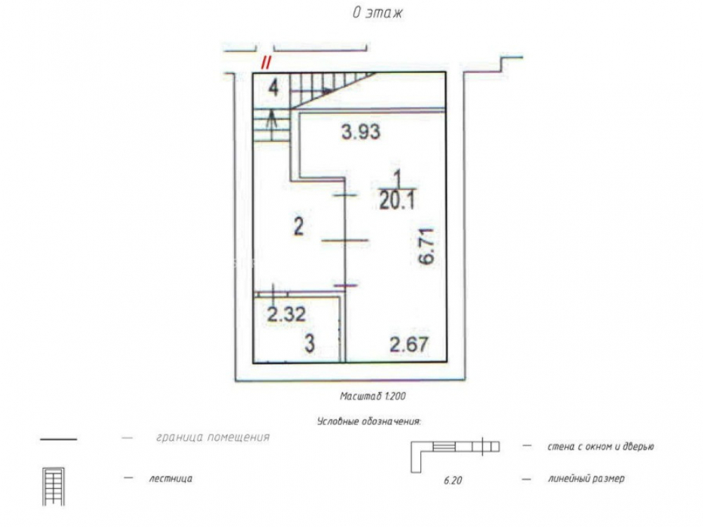 Несколько отдельных входных групп. Зона разгрузки/погрузки. Наземная парковка. Площадь 1 этажа -295 м2; Площадь подвала - 34 м2;
