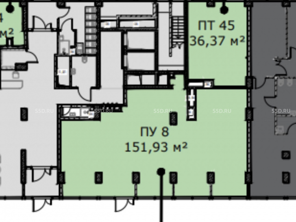 1-й этаж жилого дома. Общая площадь - 151.93 м². Отдельный вход с улицы. Высота потолков 4.8 м. Витринное остекление. Все центральные коммуникации. Эл. мощность 38 кВт.