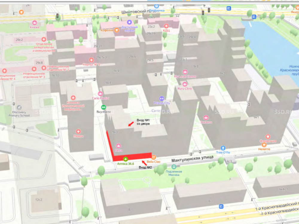 Подъезд с Мантулинской улицы и 1-го Красногвардейского проезда.