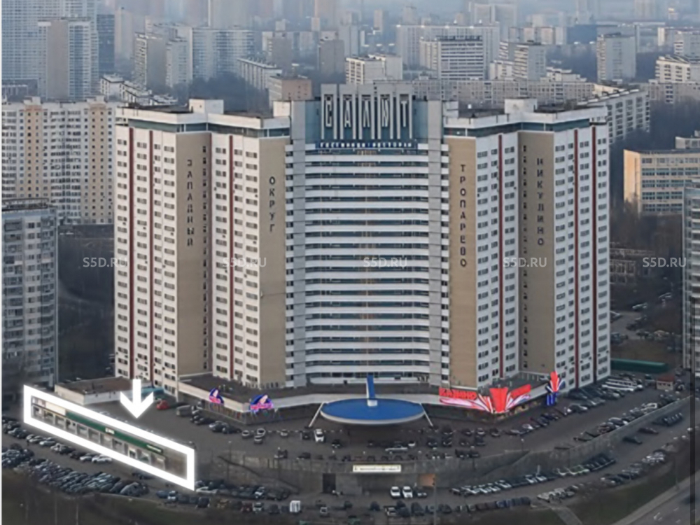 Продажа помещения с арендатором Пятерочка. Адрес: г. Москва, ЗАО, Ленинский проспект, д.158. Ближайшие станции метро: Юго-Западная и Тропарева - 7 минут пешком. Остановка в 100 метрах. Помещение расположено на 1 этаже знаменитой гостиницы «Салют». Развитая инфраструктура района и транспортная доступность. Прекрасная видимость со стороны улицы. Место для размещения рекламы. В округе многоэтажная жилая застройка, отсутсвуют конкуренты.