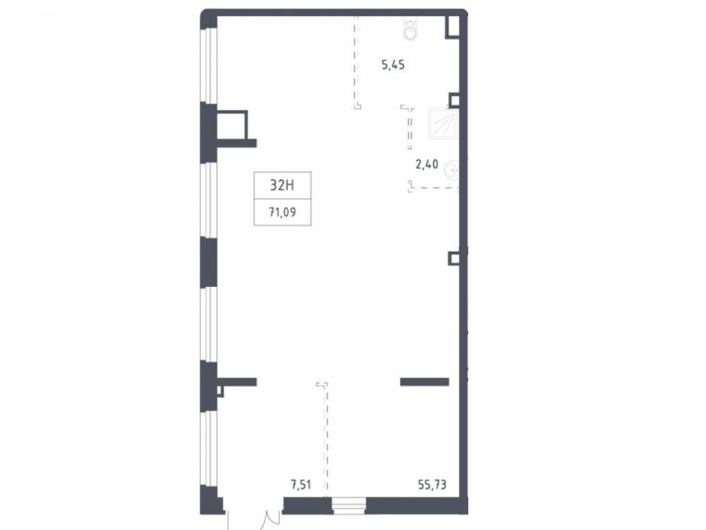 Площадь 71.1 м²., располагается на 1 этаже, отдельный вход , высота потолков 3.2 м - 6.2 м., без отделки, мощность электричества 12.7 кВт.