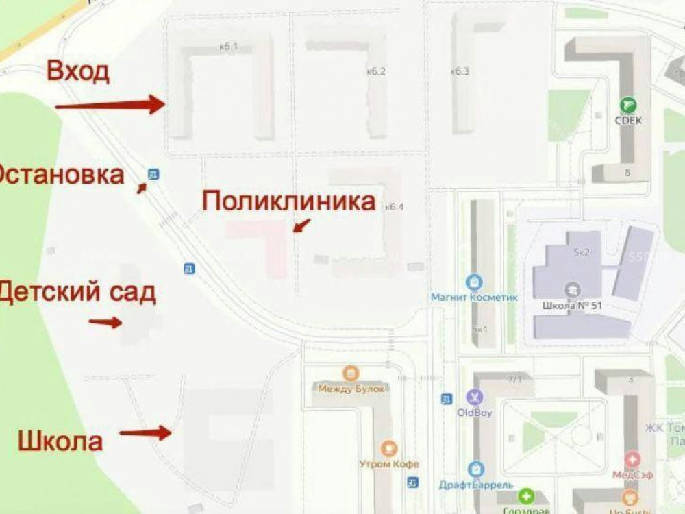 Торговое окружение: Пятерочка, Здравсити, Oзон,WB,барбершоп и т.д.