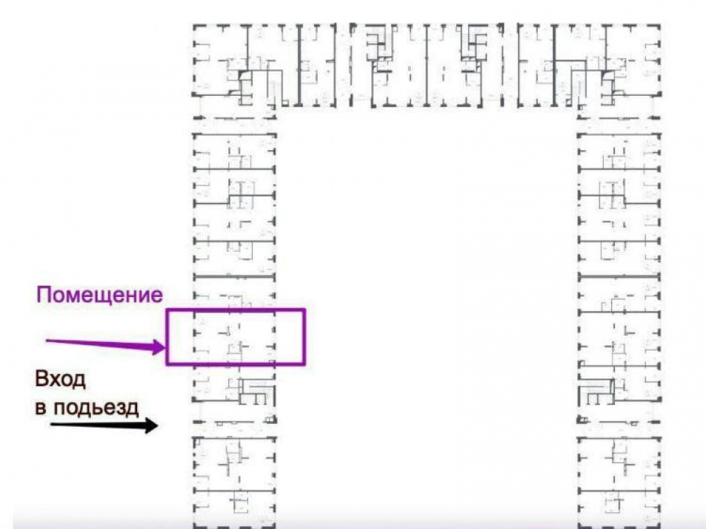 Помещение занимает Первый этаж жилого здания.