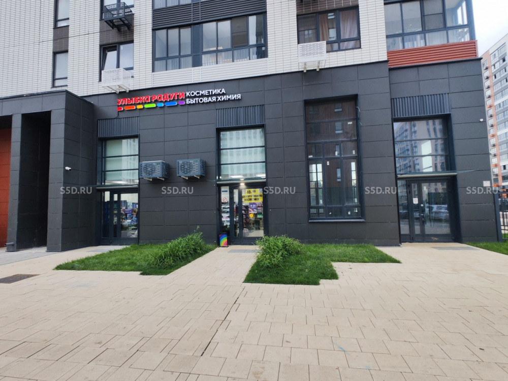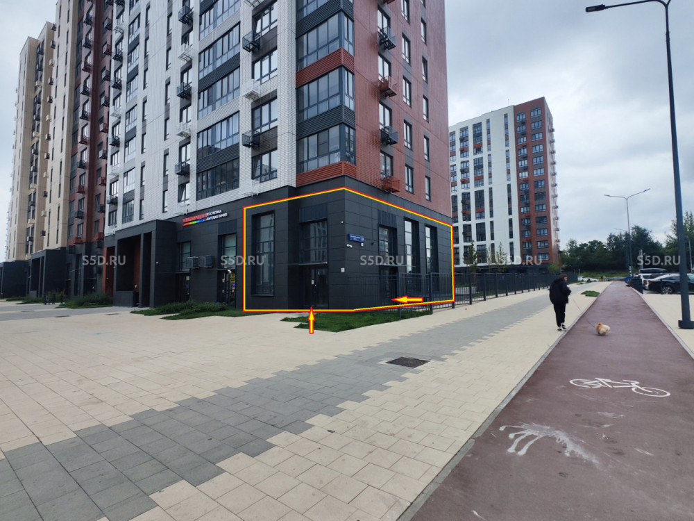 Площадь: 90.5м2 в одном уровне, торцевое помещение - 2 угла дома. Количество входов: 2 входа, 5 витринных окон на 3 стороны дома. Высота потолков: 4.1м (возможна организация антресоли), выделенная мощность: 18кВт, современная инженерия.
