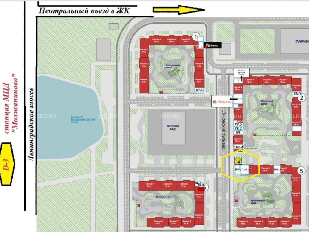 Количество квартир в ЖК – 3 483, расчетное кол-во жителей 8 700 человек. Комплекс находится всего в 7 км от МКАД по Ленинградскому шоссе, сразу после пересечения с Международным шоссе.