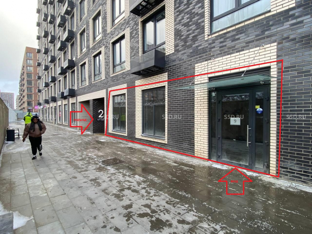 Помещение находится на 1й линии, пешеходная зона/основная пешеходная тропа, на въезде в ЖК. Расположено по пути следования жителей на самом трафиковом коридоре ЖК. Мало коммерческих помещений — в данном квартале из 6 многоквартирных
