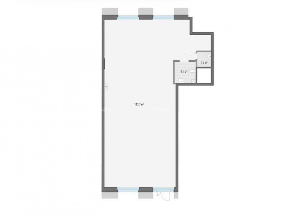 помещение на первом этаже жилого дома площадью 151,2 м2 с отдельным входом, витринное остекление, электр. мощность 23,8 кВт., потолки 6,1 м, мокрая точка. Срок сдачи - 1 кв 2027 г