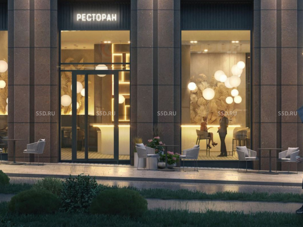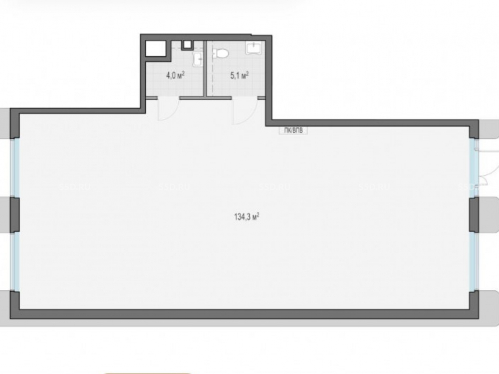 помещение на первом этаже жилого дома площадью 143,4 м2 с отдельным входом, витринное остекление, электр. мощность 45 кВт., потолки 5,85 м, мокрая точка. Срок сдачи - 1 кв 2027 г