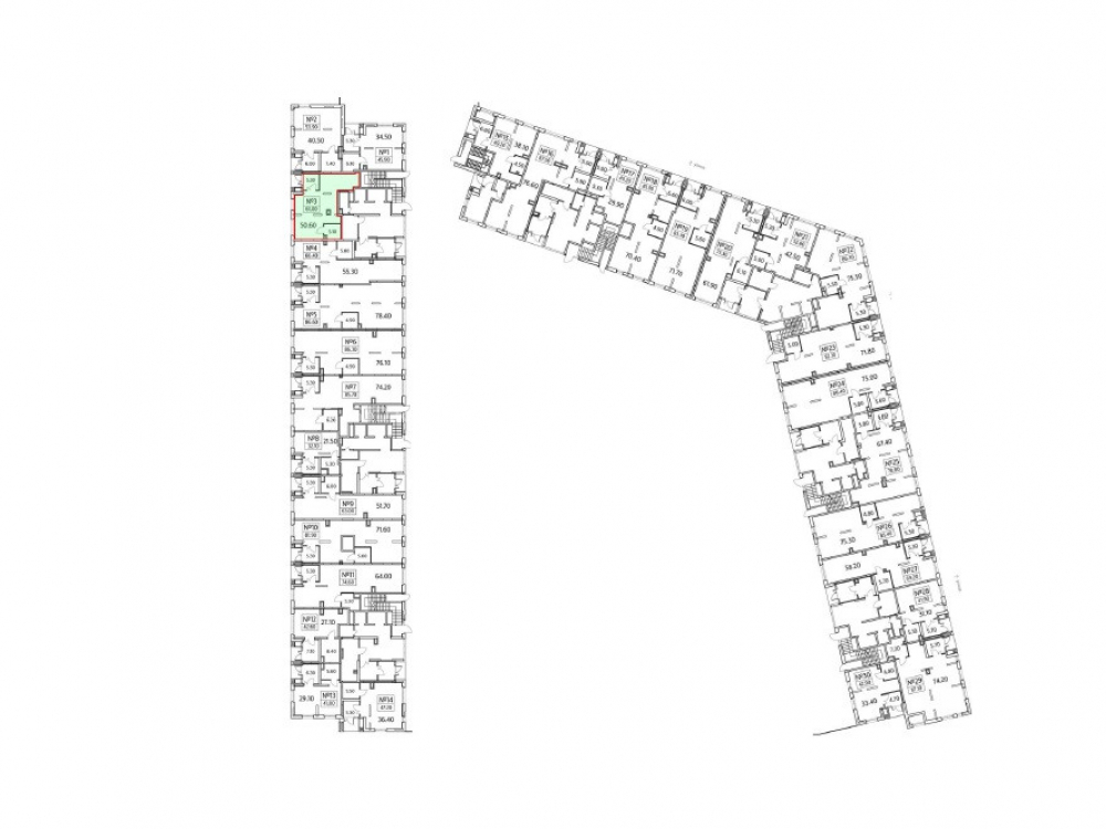 Помещение общей площадью 60,2 кв.м, 1 этаж 16-этажного жилого дома.