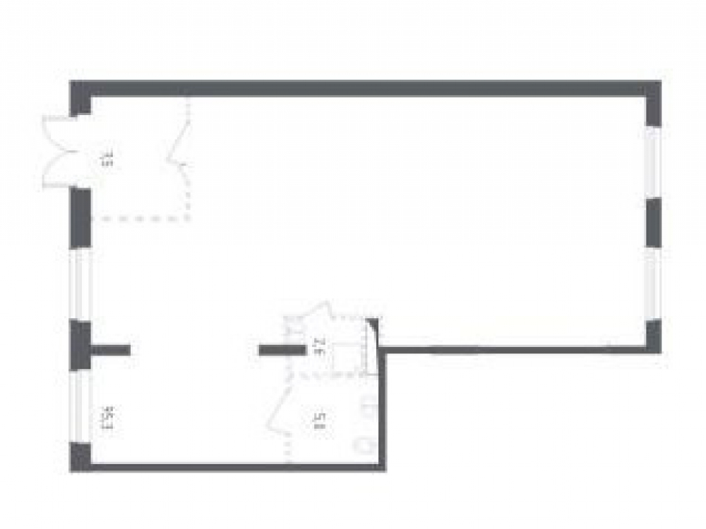 Зальная планировка. Мокрая точка. Витринное остекление и место для размещения вывески.
