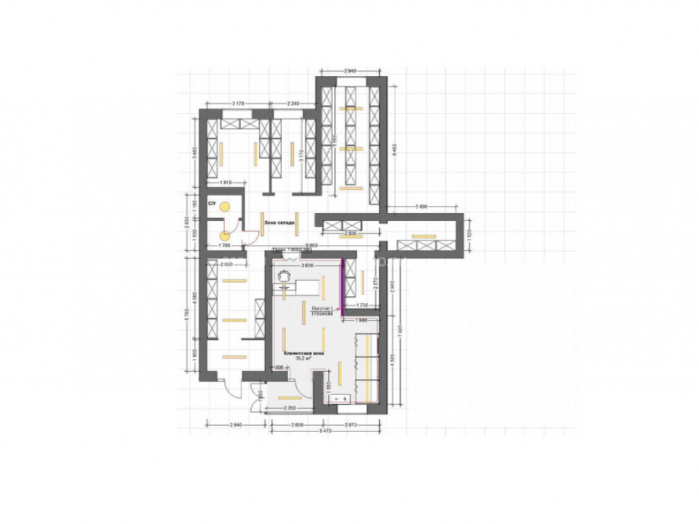 Помещение общей площадью – 119, 5 кв. м., 1 этаж.
