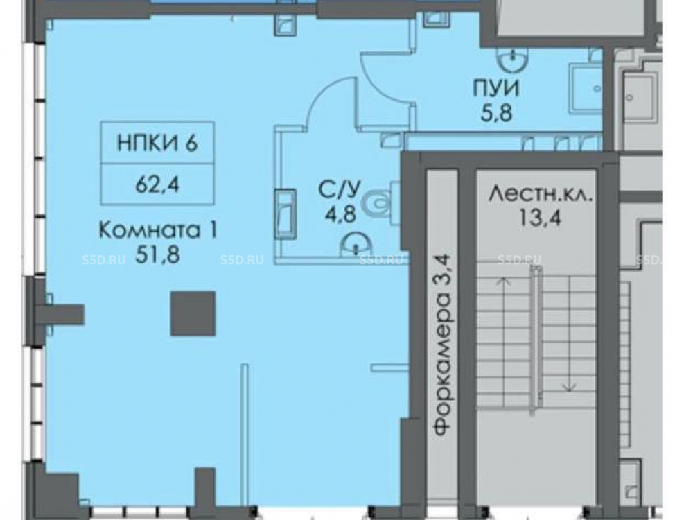 Общая площадь: 62.4 м2