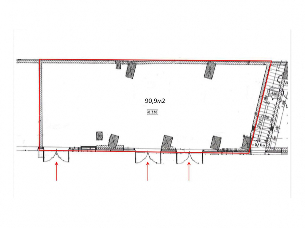 Помещение на 1 этаже 24 этажного жилого многоквартирного дома. Общая площадь помещения 90,7 кв.м. Отдельный вход. Свободная планировка. Высокие потолки, парковка.