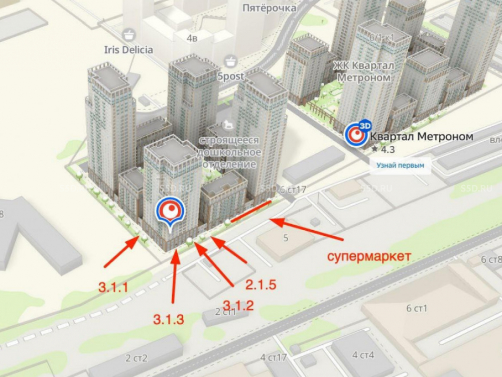 Торговое окружение: Пятерочка, Магнолия, Сбербанк.