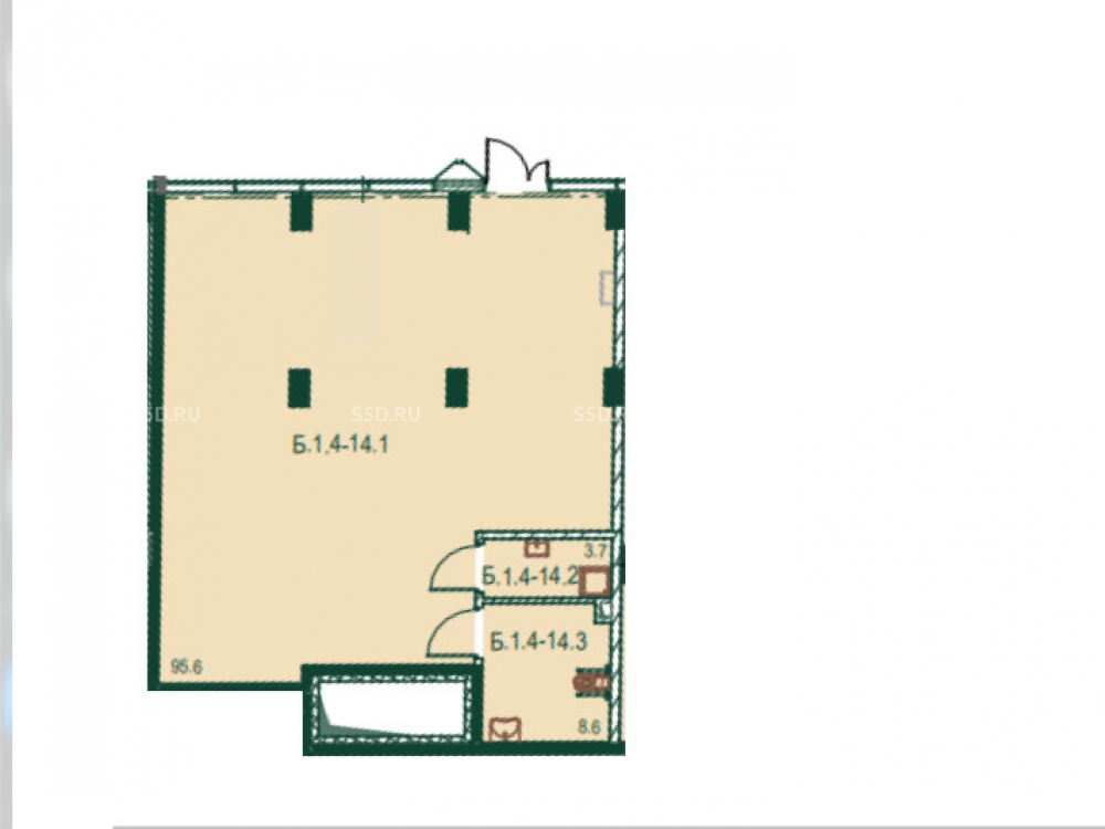 Витражное остекление. Высота потолков 4.3 - 4.9 м. Отдельная входная группа с фасада. Электрическая мощность - 32 кВт, можно увеличить. Без отделки.