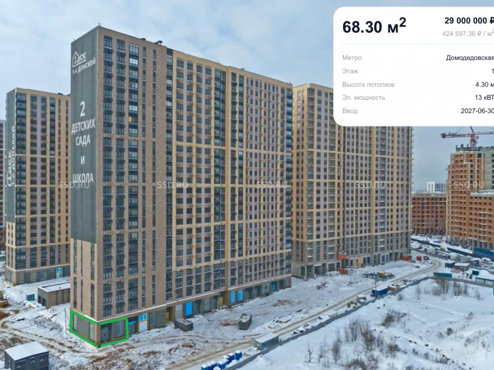 В продаже Угловое помещение 68.3 м2 в ЖК 1-Донской.ФСК.