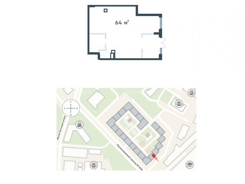 1 этаж 19-этажного жилого дома, общая площадь 64 кв.м.