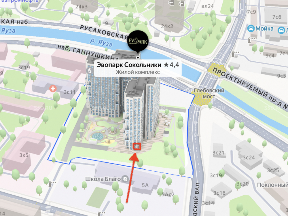 Ближайшая станция метро - Преображенская площадь, 15 минут пешком. Помещение расположено на 1 этаже жилого дома. ЖК бизнес-класса EVOPARK Сокольники строится в локации с высоким трафиком. Ввод в эксплуатацию – IV квартал 2026 года. В ЖК запроектировано 2 корпуса переменной этажности до 21 этажей, 722 апартаментов. Численность резидентов 1300 человек. Свыше 42 000 человек проживает в радиусе 1 км.