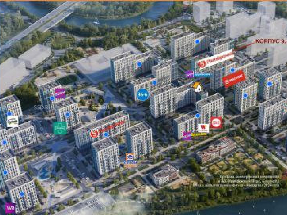 Помещение находится в ЖК «Прибрежный Парк» (застройщик «Самолет»). Крупный микрорайон с высокой плотностью населения (22 корпуса). Ж/д станция «Ленинская» в 15 минутах ходьбы. До метро «Домодедовская» — 30 минут на общественном транспорте. Помещение расположено в непосредственной близости от магазина «Магнит», что гарантирует высокий пешеходный трафик. Рядом — два детских сада и школа.