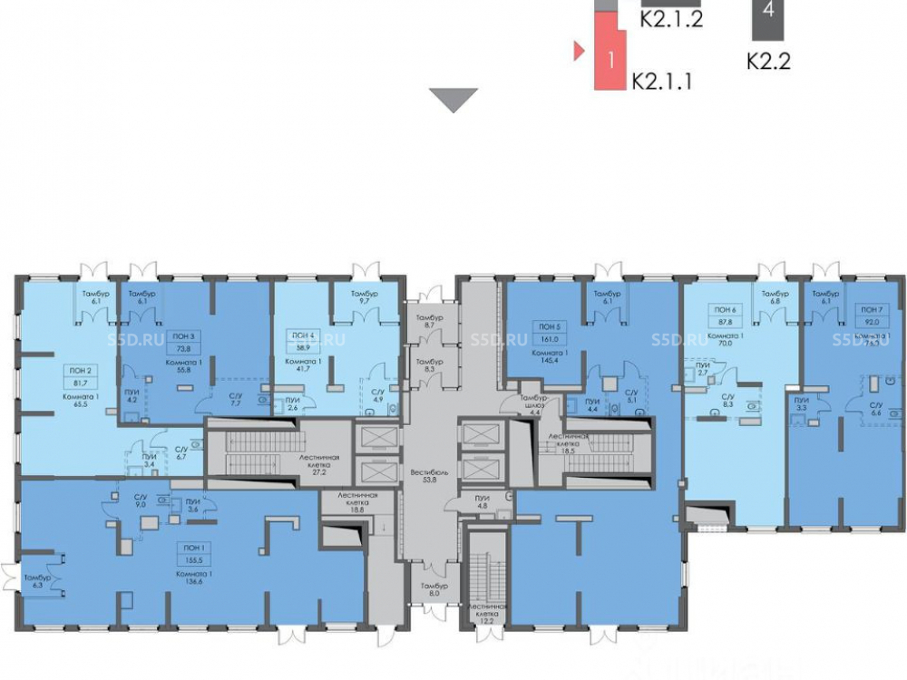 Общая площадь: 87.8 м2
