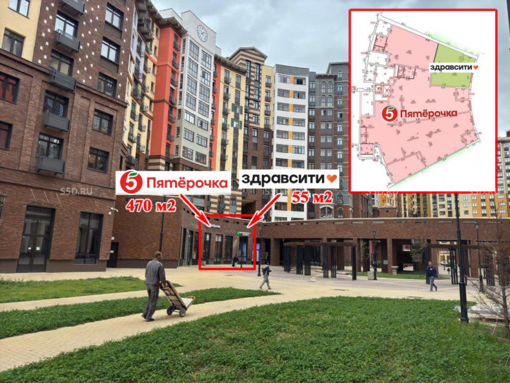 К продаже предлагается торговая площадь с арендаторами "Пятерочка" и аптека "Здравсити" в самом сердце ЖК, в густонаселенном жилом массиве, в зоне. активного пешеходного трафика, напротив пешеходной аллеи, по адресу: МО, пос. Развилка, Римский проезд 13.
