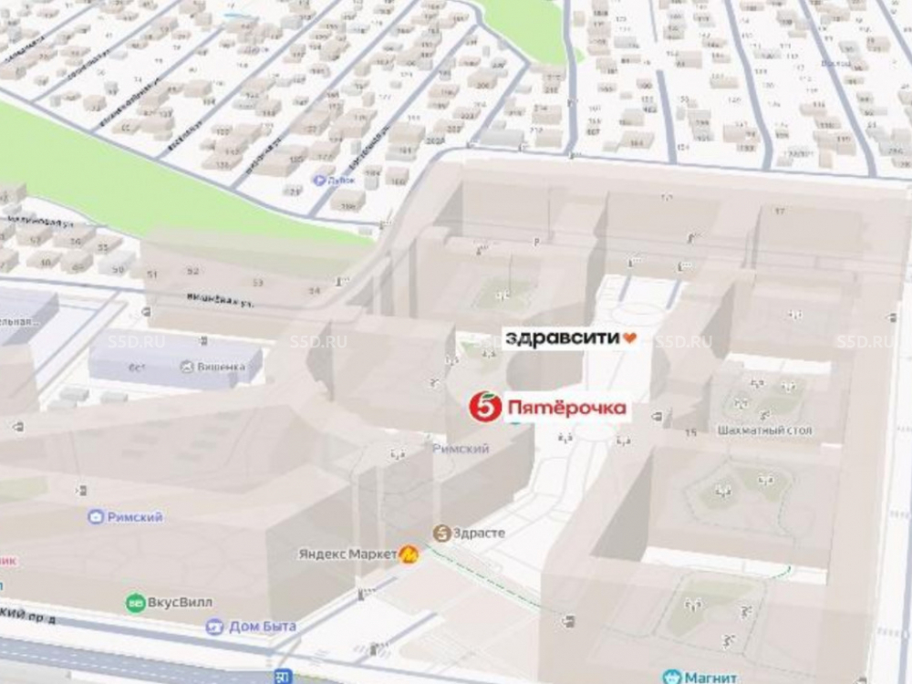 ЖК комфорт-класса на 5 097 квартир. Квартиры в чистовой отделке, идет активное заселение. Соседи: супермаркет Магнит, Винлаб. Плотный жилой массив. Первый этаж. 10 минут на автомобиле от станции метро "Домодедовская". ЖК «Римский» состоит из восьми корпусов высотой от 6-ти до 18-ти этажей на 16.000 жителей. Магазин «Пятерочка» находится в стилобатной части корпуса, алкогольную лицензию продлят единственным на аллее.