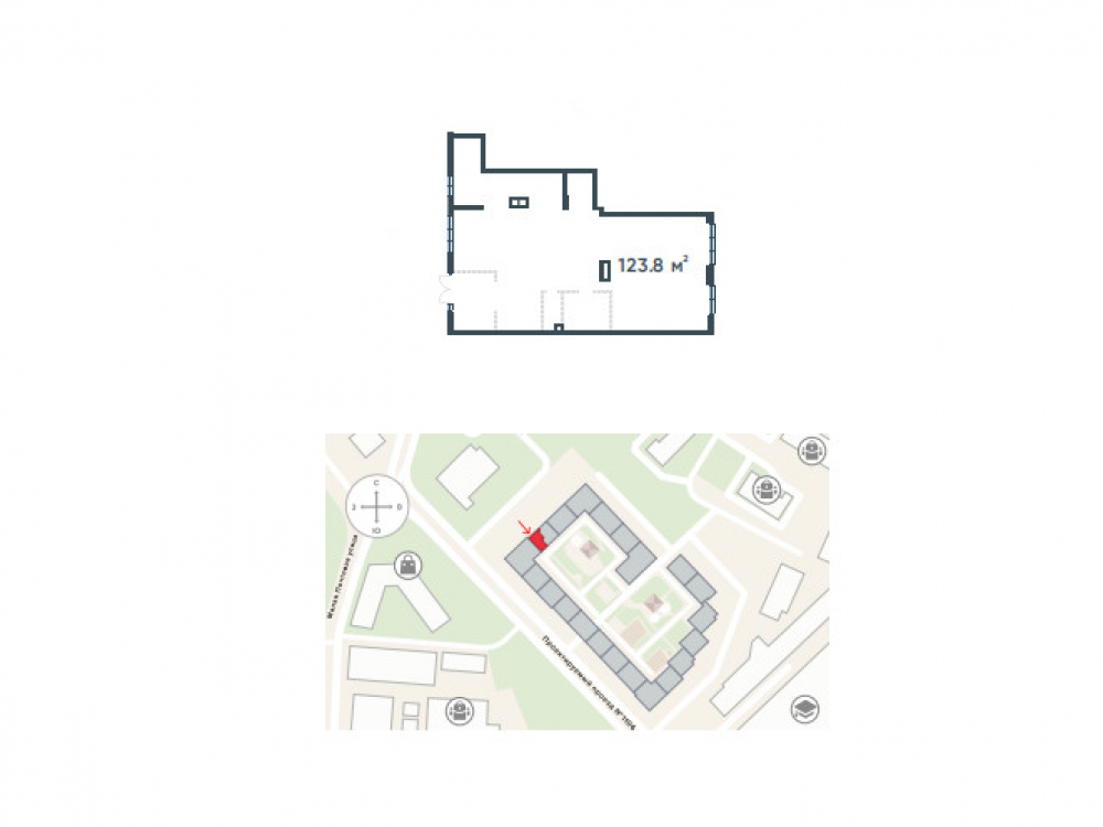 2 этаж 19-этажного жилого дома, общая площадь 123.8 кв.м.