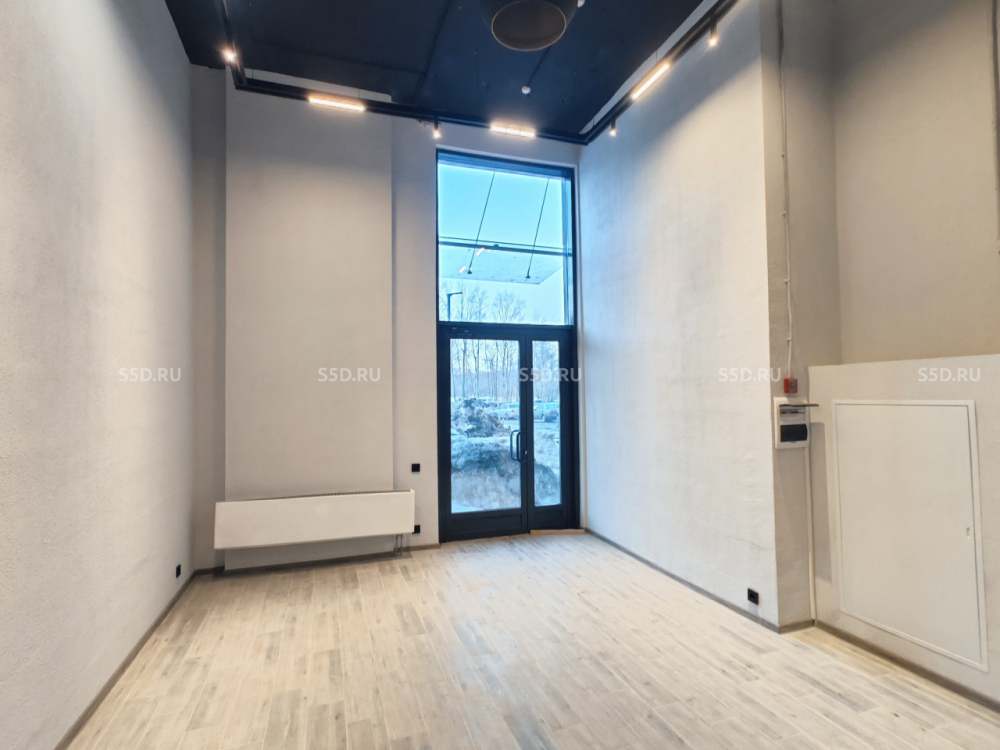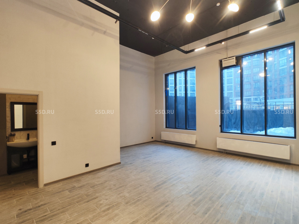 Общая площадь помещения 75 м2. 1-й этаж жилого дома. Вход с 1й линии, расположено непосредственно рядом с въездом в подземный паркинг и главным входом во внутреннюю дворовую территорию двух корпусов ЖК, отличная визуализация с главной улицы ЖК. Витринное остекление. Высота потолков 5.4 м. - возможность увеличения полезной площади через сооружение антресоли. Эл. мощность 15 кВт. Все центральные коммуникации. Состояние помещения - сделан полный офисный ремонт. Парковка перед фасадом.
