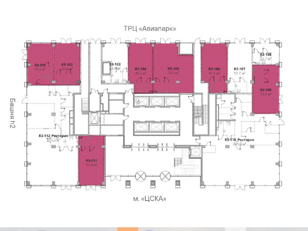 Транспортная доступность: Метро «ЦСКА» и ТЦ «Авиапарк» в 1 минуте пешком.