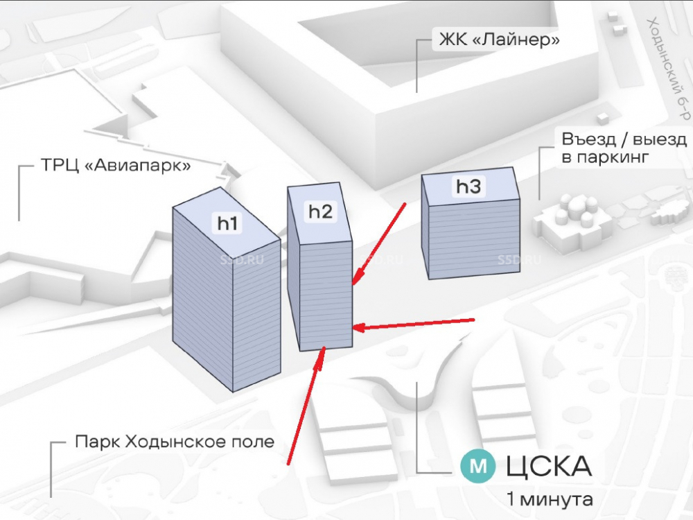 Метро «ЦСКА» и ТЦ «Авиапарк» в 1 минуте пешком.