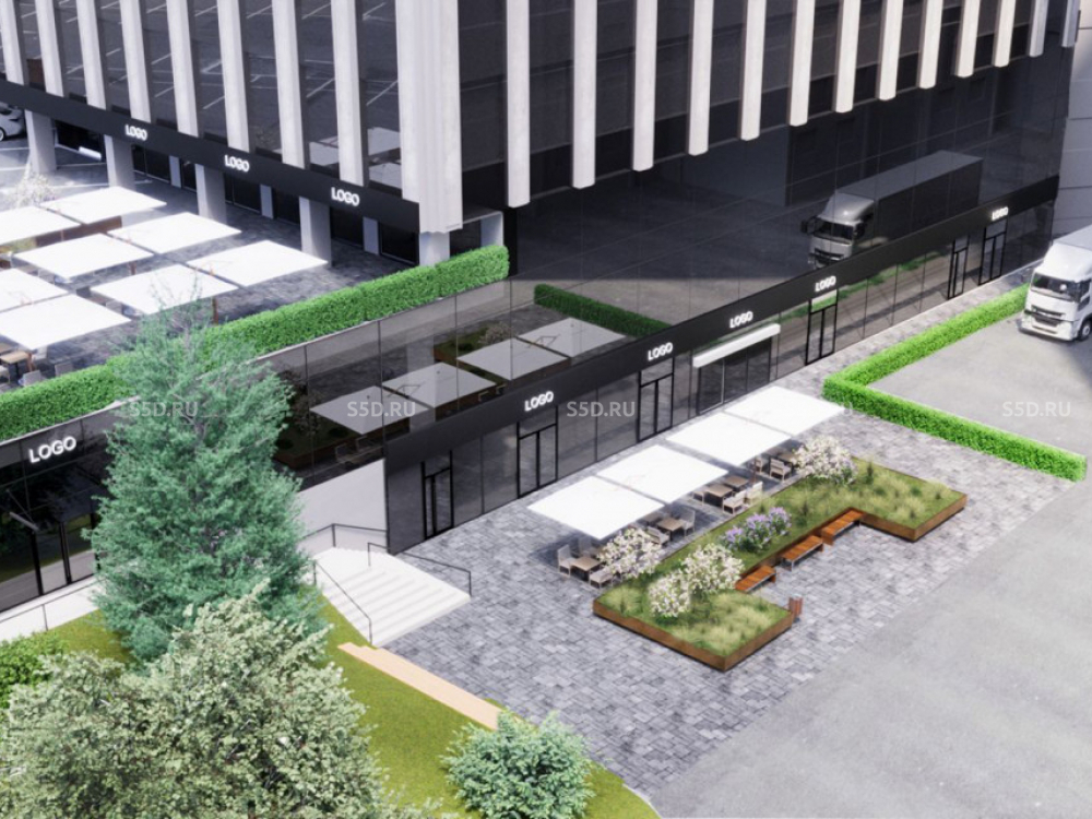 Коммерческие этажи в уровень с первым.