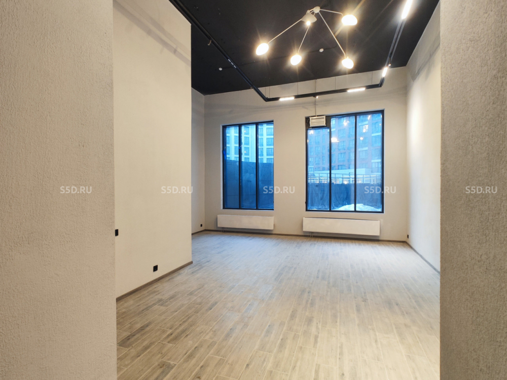 Общая площадь помещения 75 м2. 1-й этаж жилого дома. Вход с 1й линии, расположено непосредственно рядом с въездом в подземный паркинг и главным входом во внутреннюю дворовую территорию двух корпусов ЖК, отличная визуализация с главной улицы ЖК. Витринное остекление. Высота потолков 5.4 м. - возможность увеличения полезной площади через сооружение антресоли. Эл. мощность 15 кВт. Все центральные коммуникации. Состояние помещения - сделан полный офисный ремонт. Парковка перед фасадом.