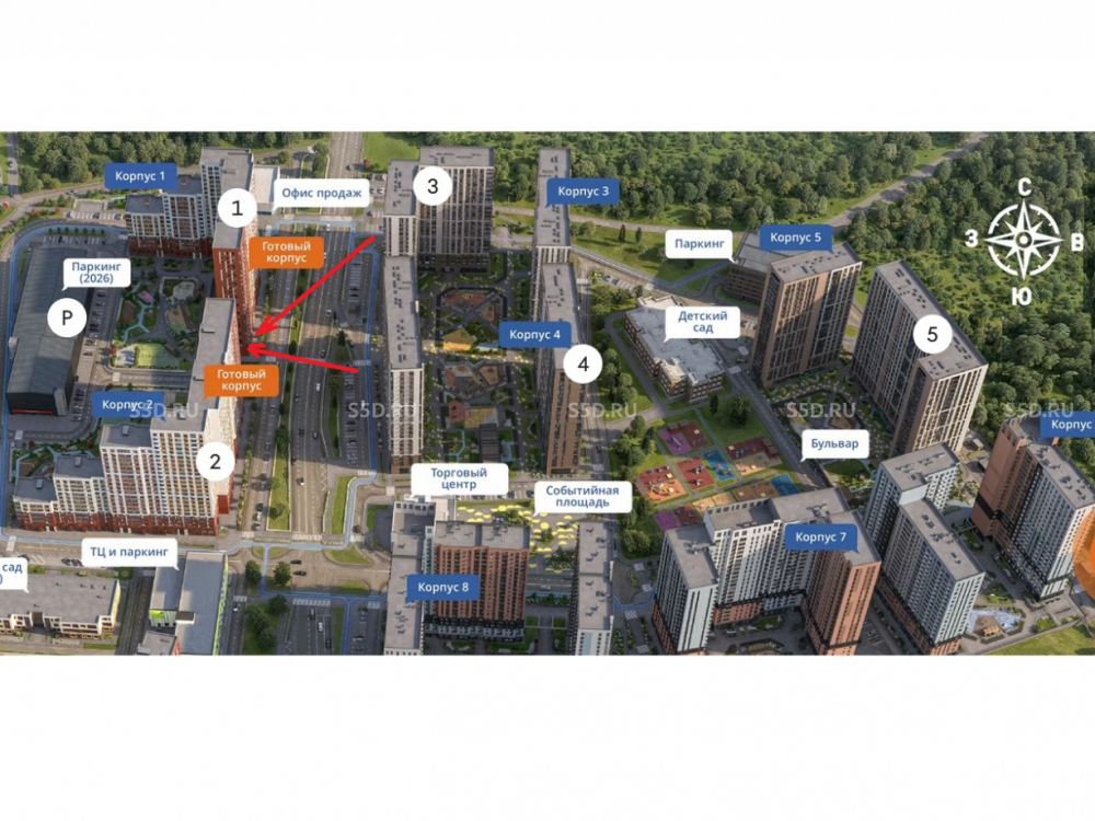 Первая очередь (корпуса 1 и 2) будут сданы во 2 кв 2025г. Вторая очередь будет сдана в 3 кв 2026г.