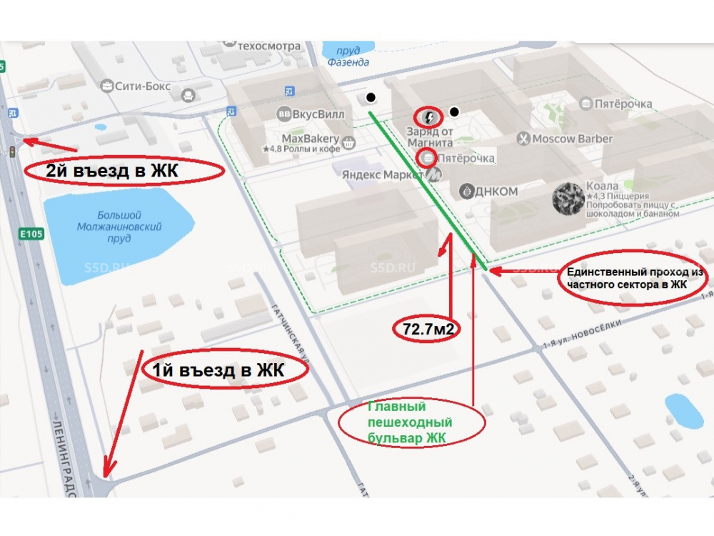 Количество квартир в ЖК – 3 483, расчетное кол-во жителей 8 700 человек. Комплекс находится всего в 7 км от МКАД по Ленинградскому шоссе, сразу после пересечения с Международным шоссе.
