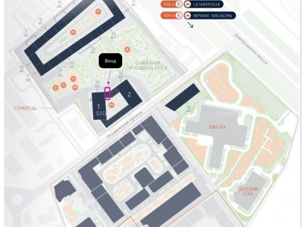 От метро Селигерская и Верхние Лихоборы - 5 минут пешком