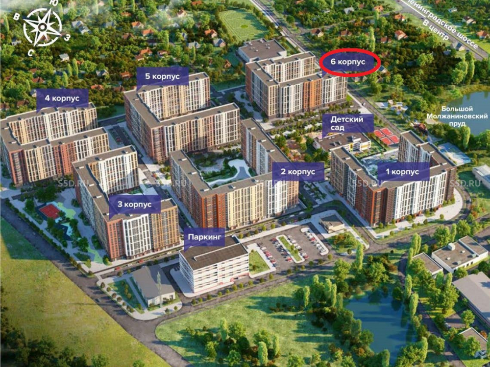 Количество квартир в ЖК – 3 483, расчетное кол-во жителей 8 700 человек. Комплекс находится всего в 7 км от МКАД по Ленинградскому шоссе, сразу после пересечения с Международным шоссе.
