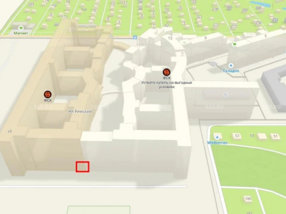 Напротив входа — открытый паркинг на 200 м/м и закрытый паркинг на 999 м/м.