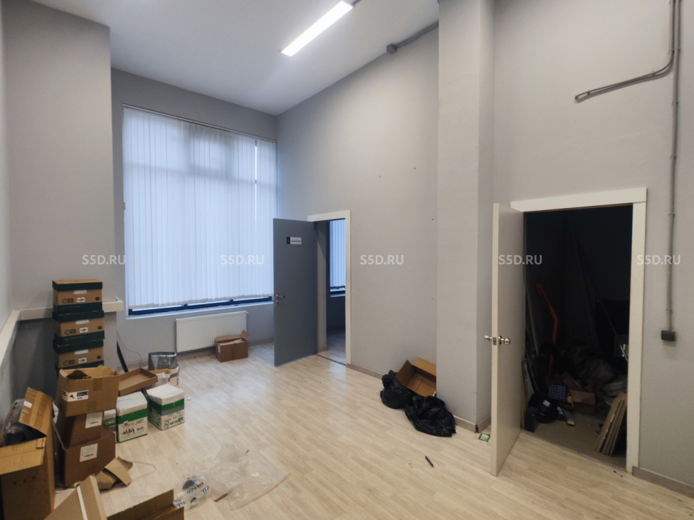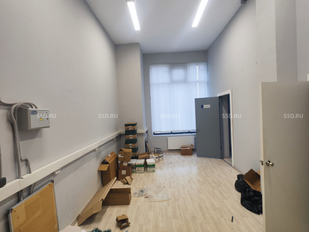 Общая площадь помещения 47.2 м2. 1-й этаж жилого дома. Вход с улицы через тамбур. Витринное остекление. Высота потолков 5.4 м. Эл. мощность 9.5 кВт. Все центральные коммуникации. Состояние помещения - сделан полный офисный ремонт. Парковка перед фасадом.