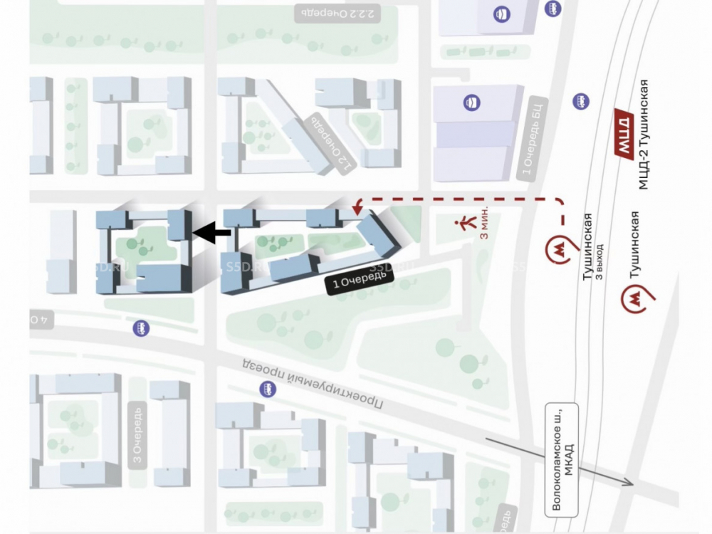 Транспортная доступность: 3 минуты от станции метро Тушинская. 6 минут от Волоколамского шоссе. 8 минут от МКАДа.